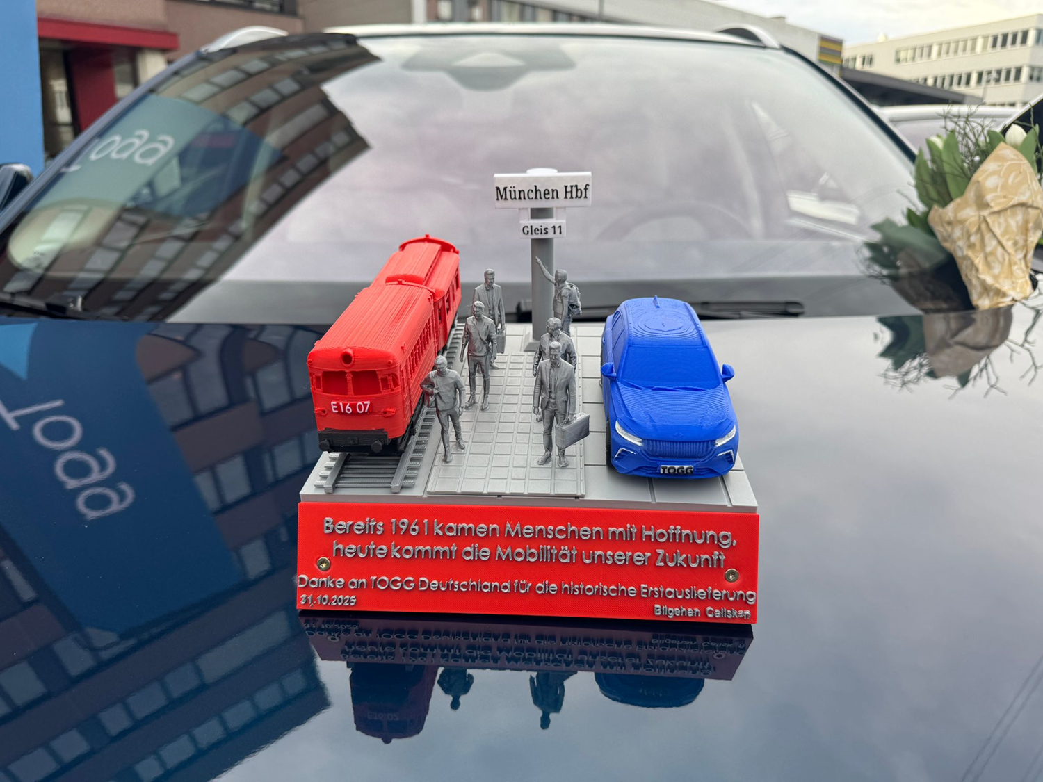 Almanya'da ilk teslimatlarını gerçekleştiren TOGG'un yetkililerine "1961 göç ve geleceğin mobilitesi" sürprizi