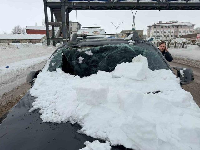 Otomobilin üzerine kar kütlesi düştü: 1 yaralı