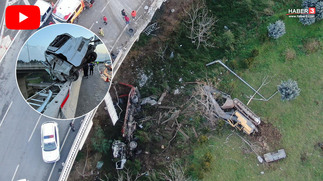 Uçan Yol'da korkunç kaza: Biri viyadükten aşağı uçtu, diğeri asılı kaldı!