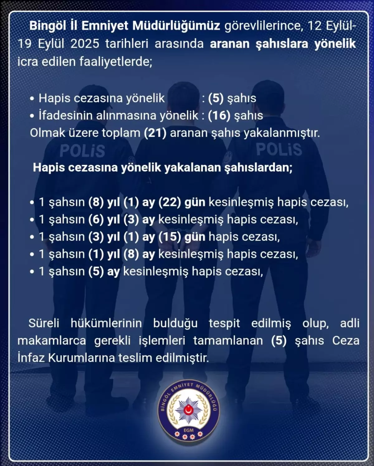 Bingöl'de 21 Suçlu Yakalandı