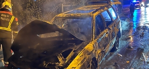 Yolda kalıp, tekrar çalıştırılmak istenen otomobil alev aldı