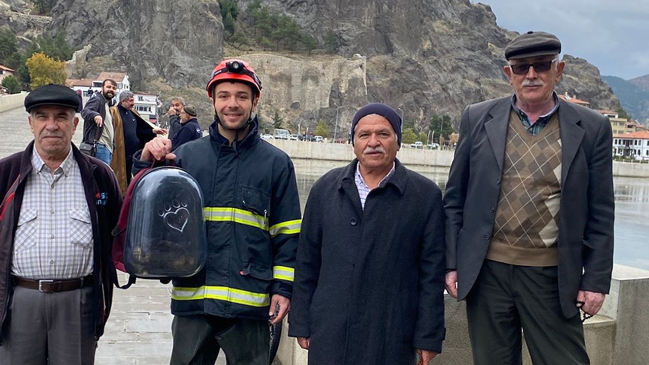 Kızılırmak'a düşen kedi itfaiye tarafından kurtarıldı
