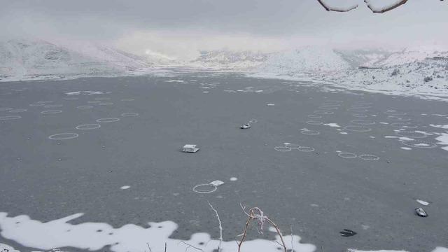 Adıyaman’da Çat Barajı’nın yüzeyi buz tuttu