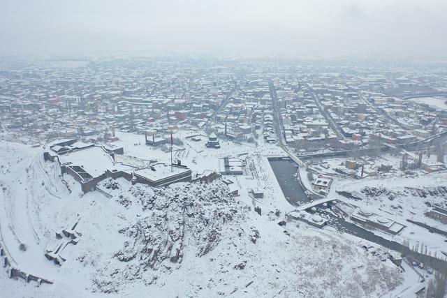 Yoğun yağışın etkili olduğu Kars'ta kar manzarası dronla görüntülendi