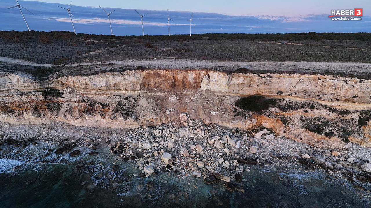 Bozcaada'nın Polente Burnu'nda dev falezlerde çatlak ve çökmeler başladı