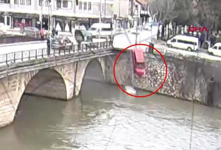 Ters yöne girdi, çarpışıp nehre uçtu… Otomobildeki anne ile kızı yaralı olarak kurtarıldı