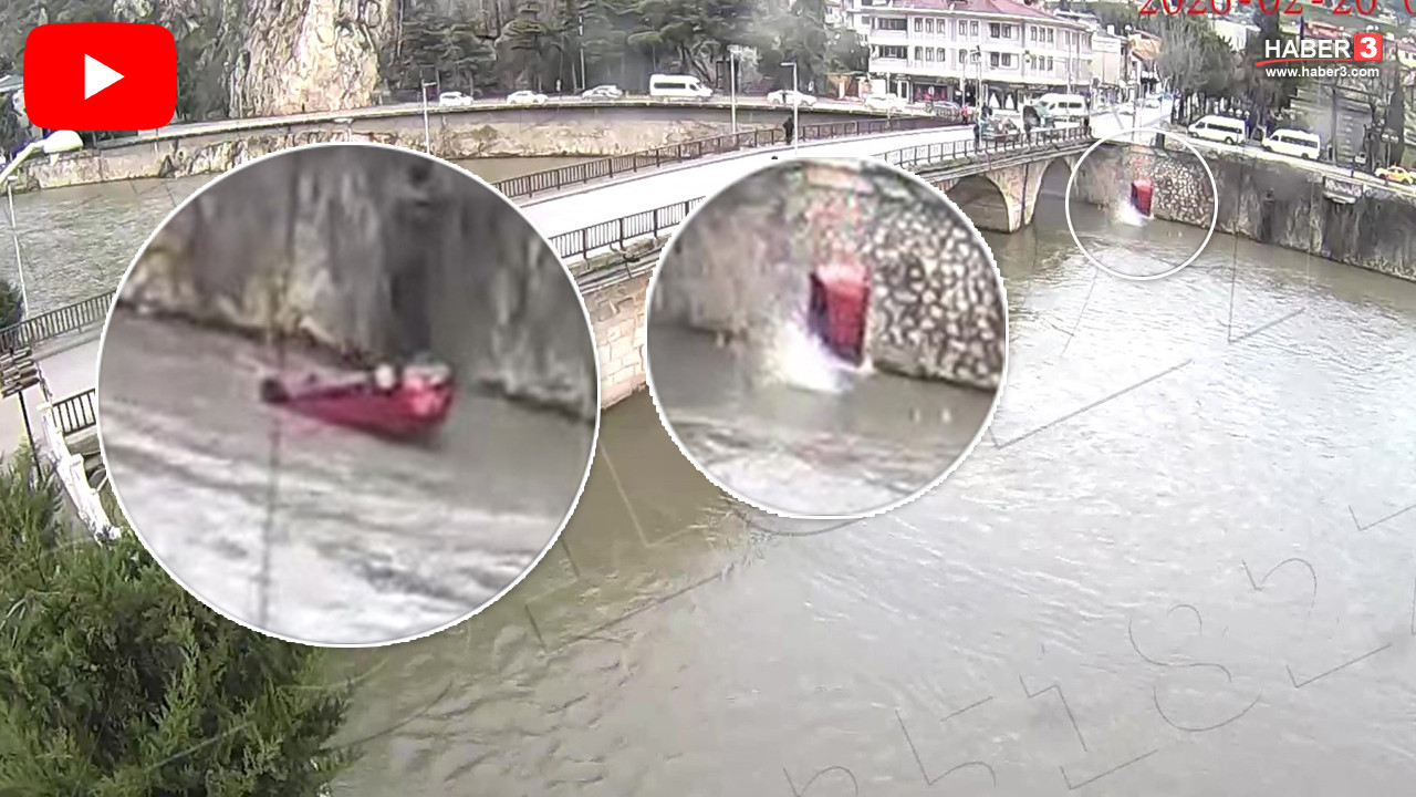 Yüreklerin ağızlara geldiği kaza saniye saniye kamerada: Kaza yapan araç Yeşilırmak Nehri'ne uçtu!