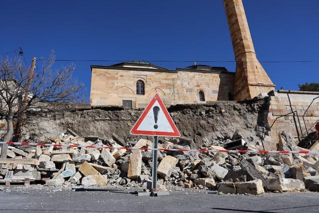 Tarihi caminin istinat duvarı çöktü