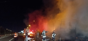 Şanlıurfa'da elektronik eşya yüklü TIR dorsesinin yanması kamerada