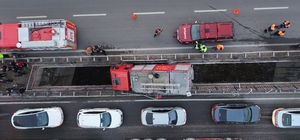 Yüksek gerilim tellerine ramak kala, itfaiye aracı köprü arasında sıkıştı: 3 personel yaralı