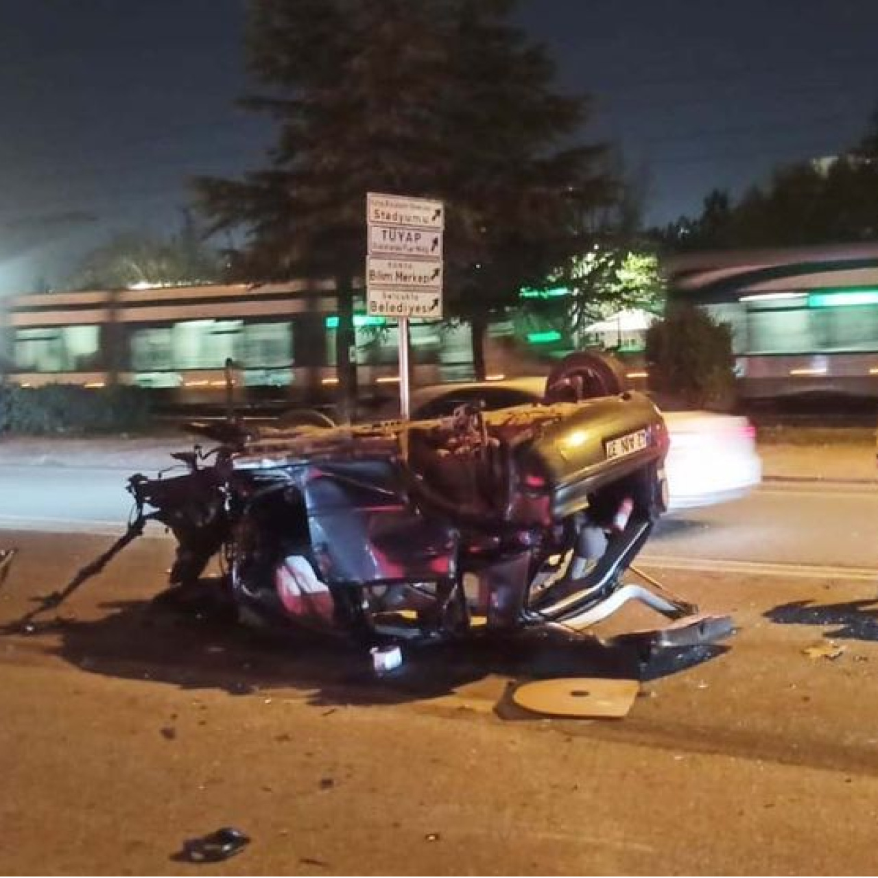 Refüjdeki ağaca çarpıp takla attı