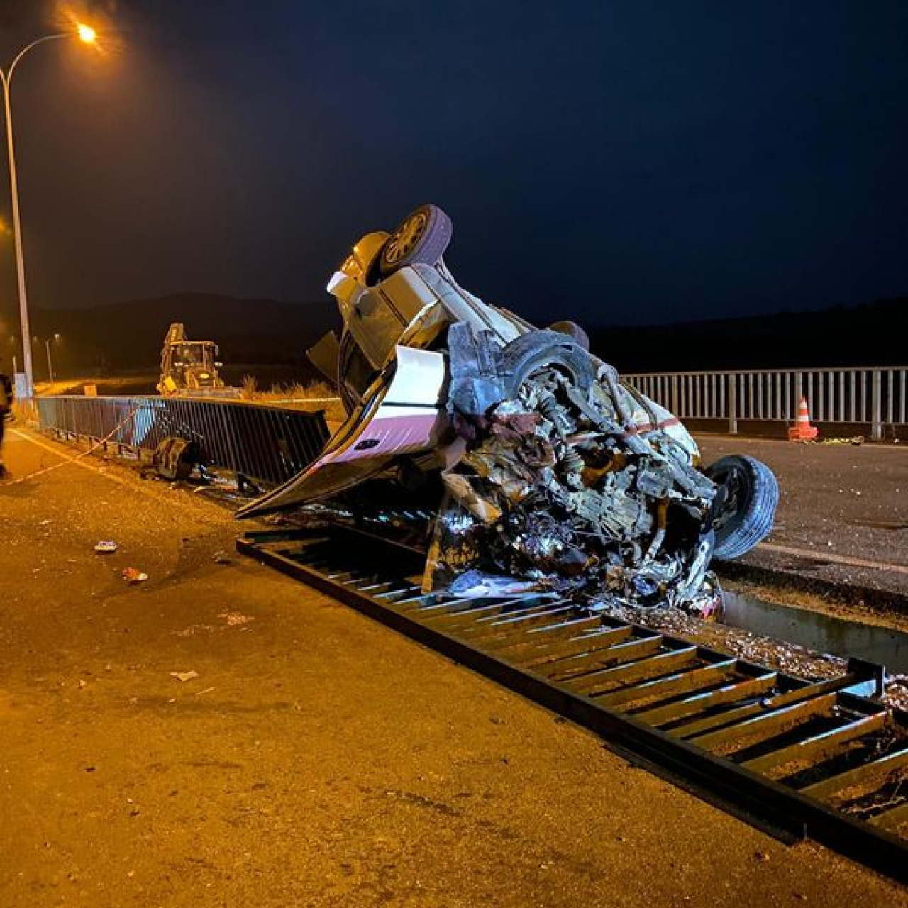 Köprü demirlerine çarpan araç hurdaya döndü: 1 ölü, 3 yaralı